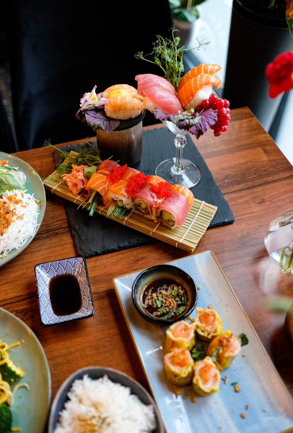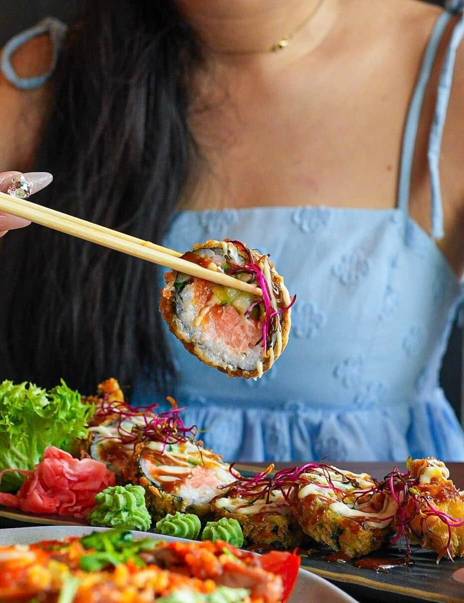 Miłośnicy sushi będą zachwyceni! Starannie przygotowane rolki – od klasycznego nigiri po fantazyjne uramaki – zachwycają smakiem i wyglądem, tworząc małe dzieła sztuki.